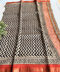 Pure Chanderi saree comes with golden zari maheswari border with printed pallu and running blouse pc