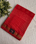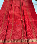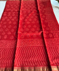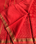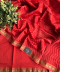 Pure Chanderi saree comes with golden zari maheswari border with printed pallu and running blouse pc
