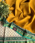 Pure Chanderi saree comes with golden zari maheswari border with printed pallu and running blouse pc