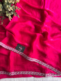 Rani pink designer chiffon saree with attached border comes with self colour satin blouse pc