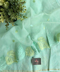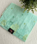 Leaf Embroidery Cotton doria saree comes with self colour plain blouse pc