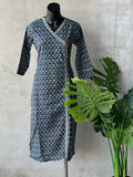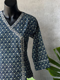 Angrakha pattern button design printed flex cotton kurti