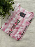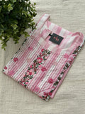 Hand Emb Light pink stripes cotton kurti