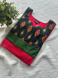 Awesome fit Dailywear Ikat patch work pure cotton Straight fit, 3/4 sleeve with attached borders, side slit kurti in size 34, 36, 38, 40, 42, 44, 46