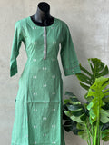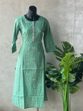 Elevate your officewear with our Mint Green Handloom Cotton Kurti. The A-line design adds a touch of sophistication, while the soft handloom cotton fabric ensures comfort throughout the day. Make a statement with this stylish and versatile piece.