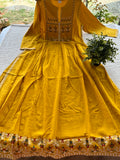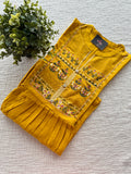 Neck embroidery pleated waist printed Rayon long kurti