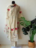 Bring joy to your closet with this cheerful embroidered mul chanderi suit set! Bursting with vibrant colors and adorned with delicate embroidery, this ensemble is your ticket to turning heads at any gathering. The mul chanderi fabric feels wonderfully soft against the skin while keeping you cool and comfortable all day long. Perfect for festivals, weddings, or whenever you want to sprinkle some sparkle into your wardrobe, this playful set combines traditional artistry with contemporary flair. Invest in a piece that celebrates your love for color and craftsmanship!