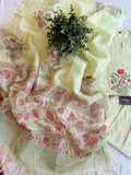 Mint green printed cotton top, elastic waist cotton pant comes with printed kota cotton dupatta.