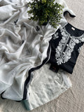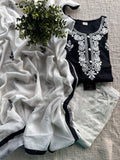 Lucknowi Embroidery neck pure cotton kurti comes with elastic waist plain cotton top with botton design comes with embrodiery cotton dupatta