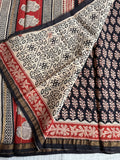 Pure Chanderi saree comes with golden zari border with printed pallu and printed blouse pc