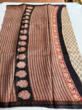 Pure Chanderi saree comes with golden zari border with printed pallu and printed blouse pc
