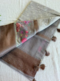 Add a splash of joy to your wardrobe with this delightful soft Chanderi saree, beautifully embroidered and printed with playful floral patterns. The shimmering zari border weaves in a touch of sparkle that catches the light with every step you take. Paired with a charming floral printed blouse piece, this set invites you to mix traditional elegance with lively, fresh vibes. Perfect for celebrations or brightening up your everyday style, this saree promises to keep you twirling in comfort and color wherever you go.