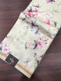 Floral printed pure munga silk saree with simple zari  border comes with printed blouse pc