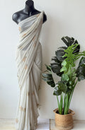 Pastel Green maple leaf emb georgette saree comes with embroidered blouse pc