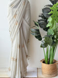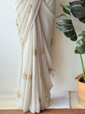Pastel green maple leaf emb georgette saree