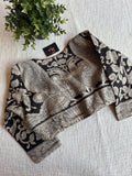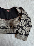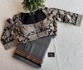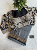Size 36 - 3/4th sleeve Kalamkari printed padded blouse comes with grey colour narayanpet cotton saree
