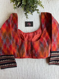 Orange ikat cotton padded blouse with 3/4th sleeves