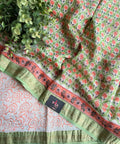 Pure Chanderi saree comes with golden zari maheswari border with printed pallu and running blouse pc