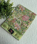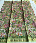 Pure Chanderi saree comes with golden zari maheswari border with printed pallu and running blouse pc