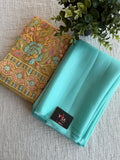Lt yellow blouse with Lt Blue jute organza saree