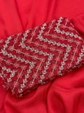 Embrace your inner goddess with this gorgeous scarlet red soft organza Saree! The plain fabric and stone work embroidery blouse will have you feeling like royalty. Whether you’re a saree enthusiast or a saree novice, this is the perfect look to get you started! (And ready to impress!)