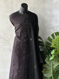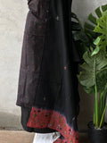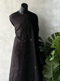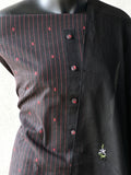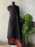 Black dobby cotton top, plain cotton bottom comes with shaded net dupatta with hand embroidery on border