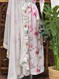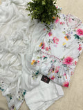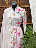 Collared Neck soft cotton fabric Neck embroidery Floral printed, side zipper ready maxi gown, comes with plain chiffon dupatta