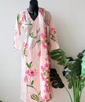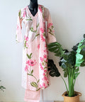 V Neck embroidery work 3/4th sleeve cotton top, elastic waist, Draw string pure cotton pant comes with printed pure cotton dupatta