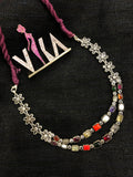 925 silver double layer navratna necklace