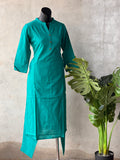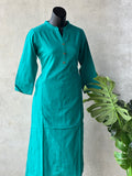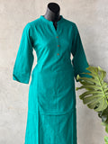 Mandarin collar pure white ready kurti, elastic waist comfortable cotton pant with side pockets