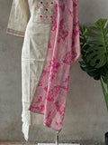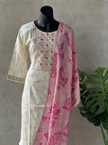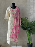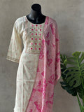 Neck embroidery work pure cotton kurti, elastic waist pure cotton pant comes with printed cotton stole (Not dupatta)