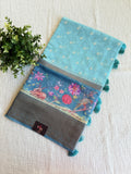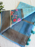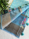 Emb and printed chanderi saree - Light Blue