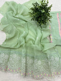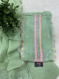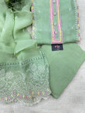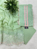 Embroidery neck organza top, plain santoon bottom comes with embroidered organza dupatta