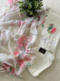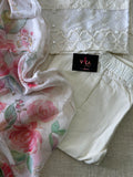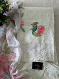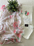 Chikan embroidery work floral printed kurti, plain cotton pant comes with printed chiffon dupatta