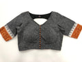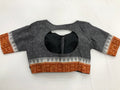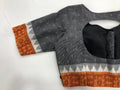 Grey/Orange Temple border ikat half sleeve ready blouse in size 36 as shown in the pic   Blouse can be extended to 38