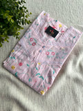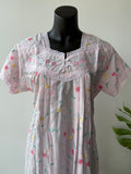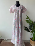 Light Pink Poly Cotton Embroidery half sleeve full length nighty