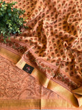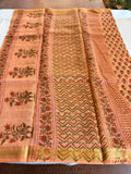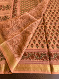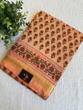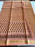 Pure Chanderi saree comes with golden zari maheswari border with printed pallu and running blouse pc