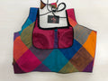Multichecked square beck front open blouse with piping and tie and back
