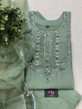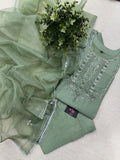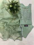 Neck emb muslin ready suit set