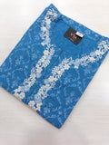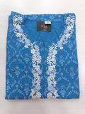 Neck emb Printed cotton kurti - Blue