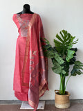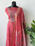 Neck emb work Tissue top, plain santoon bottom comes with weaving border banaras tissue dupatta