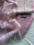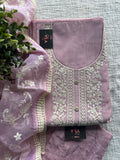 Neck embroidery silk cotton top, plain santoon bottom comes with embroidered organza dupatta