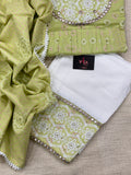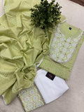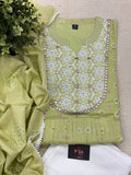 Nyra cut Neck work printed cotton ready kurti, Elastic wasit plain cotton pant comes with printed cotton dupatta