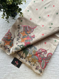 Pichwai printed semi art silk saree with scallop border comes with printed pallu and printed blouse pc