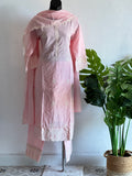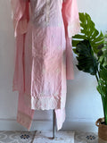 pink thread work pure cotton top, elastic waist cotton bottom comes with emb soft cotton dupatta