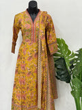V neck floral printed anarkali top, elastic waist plain cotton bottom comes with printed soft cotton dupatta