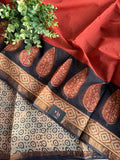 This hand block printed kota cotton saree is made from pure cotton, making it lightweight and comfortable to wear. The traditional printing technique adds a unique touch to each piece, making it a one-of-a-kind addition to your wardrobe.
