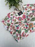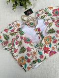 white colourful floral emb silk blouse