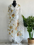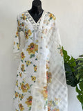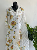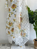 Yellow Floral printed linen cotton ready suit set