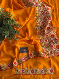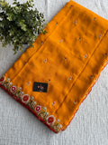 cut work embroidery vichitra silk saree with rich pallu comes with blouse pc